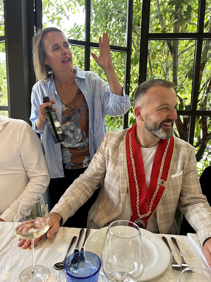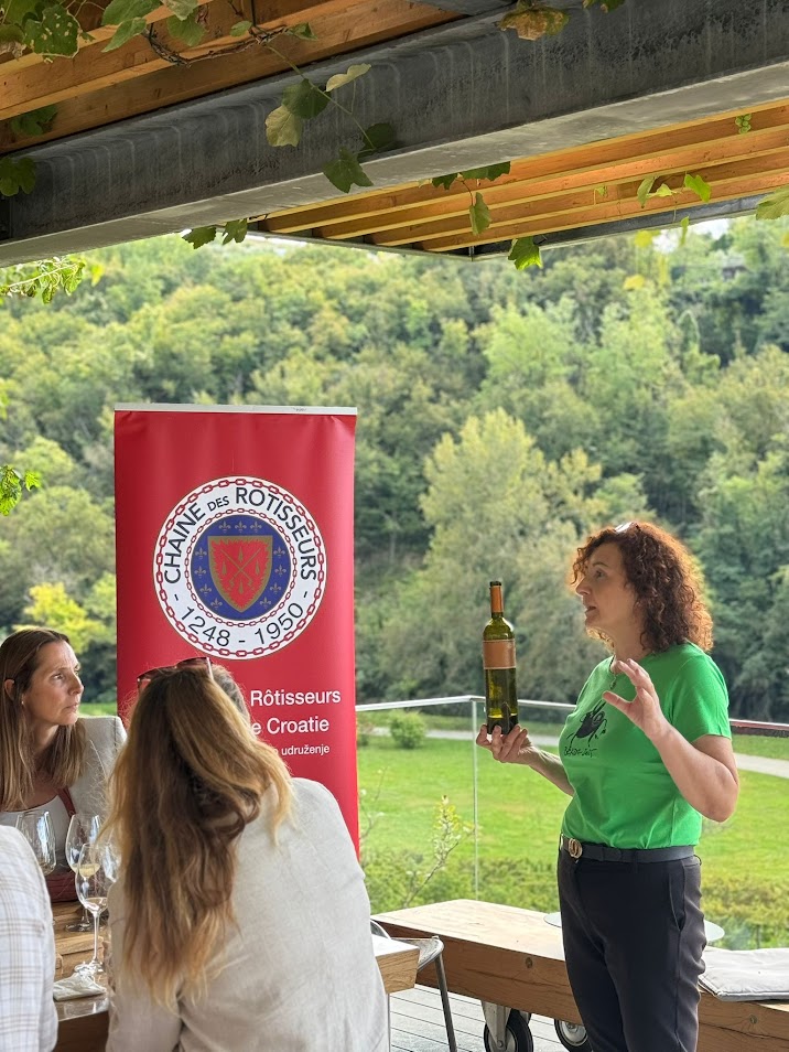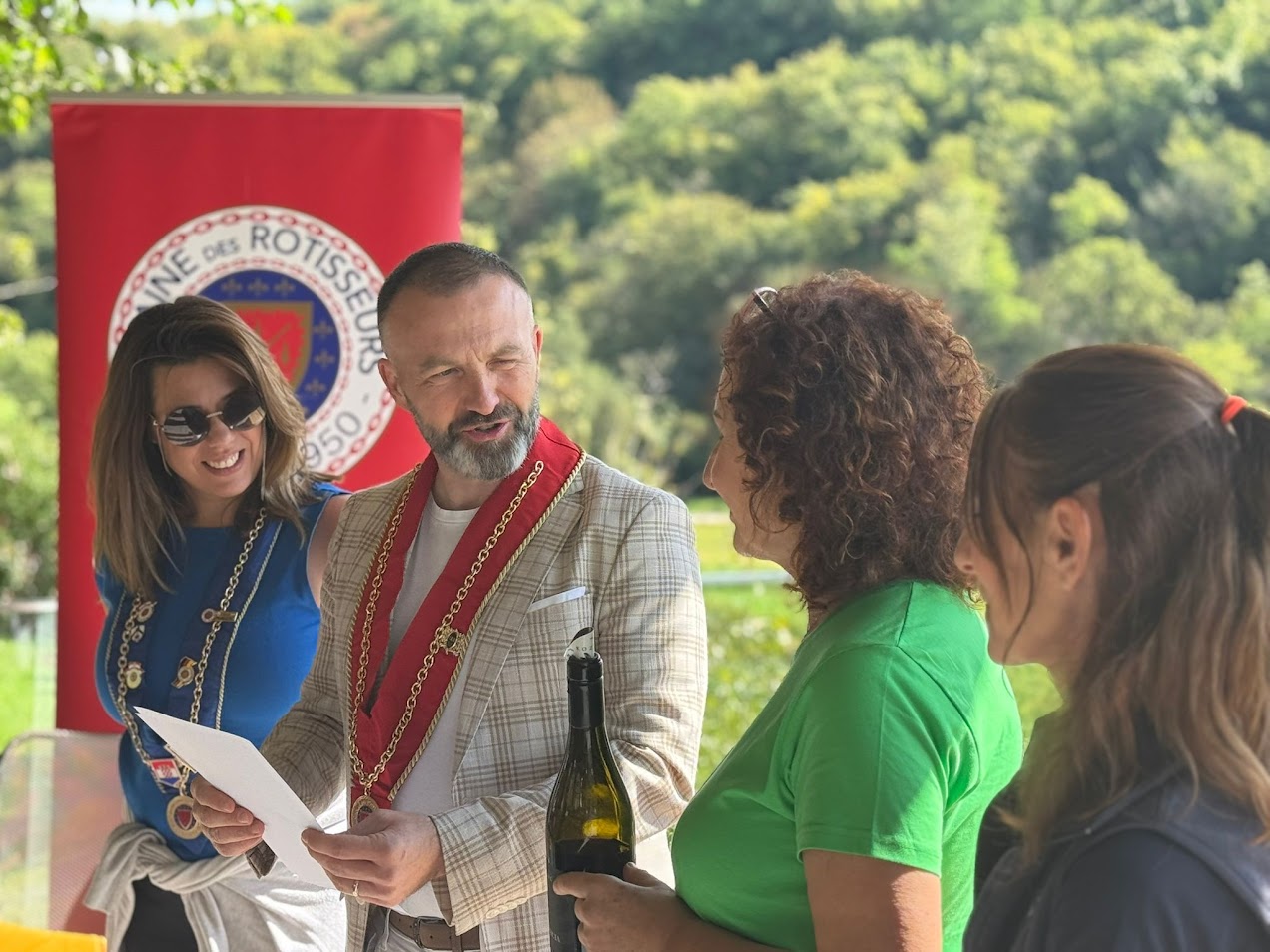 Naši su se članovi Chaîne des Rôtisseurs 27. rujna okupili u samom srcu istarskog vinskog kraja, Momjanu, gdje smo dan započeli u vinariji Kozlović. Dočekani smo uz stručno vođenu prezentaciju i degustaciju vina koja nose prepoznatljiv potpis ove renomirane vinarije. Degustacija je započela s mladom, svježom malvazijom, a zatim nas je vodila prema sve kompleksnijim i zrelijim izdanjima, otkrivajući puni raspon izražaja ove istarske sorte. Kao završni naglasak, domaćini su nas počastili čašom Santa Lucia, prestižnog crnog vina koje je svojom elegancijom, punoćom i dugim završetkom savršeno zaokružilo iskustvo.